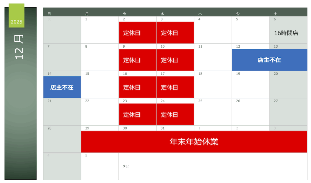 🗓 12月の営業スケジュールのお知らせ